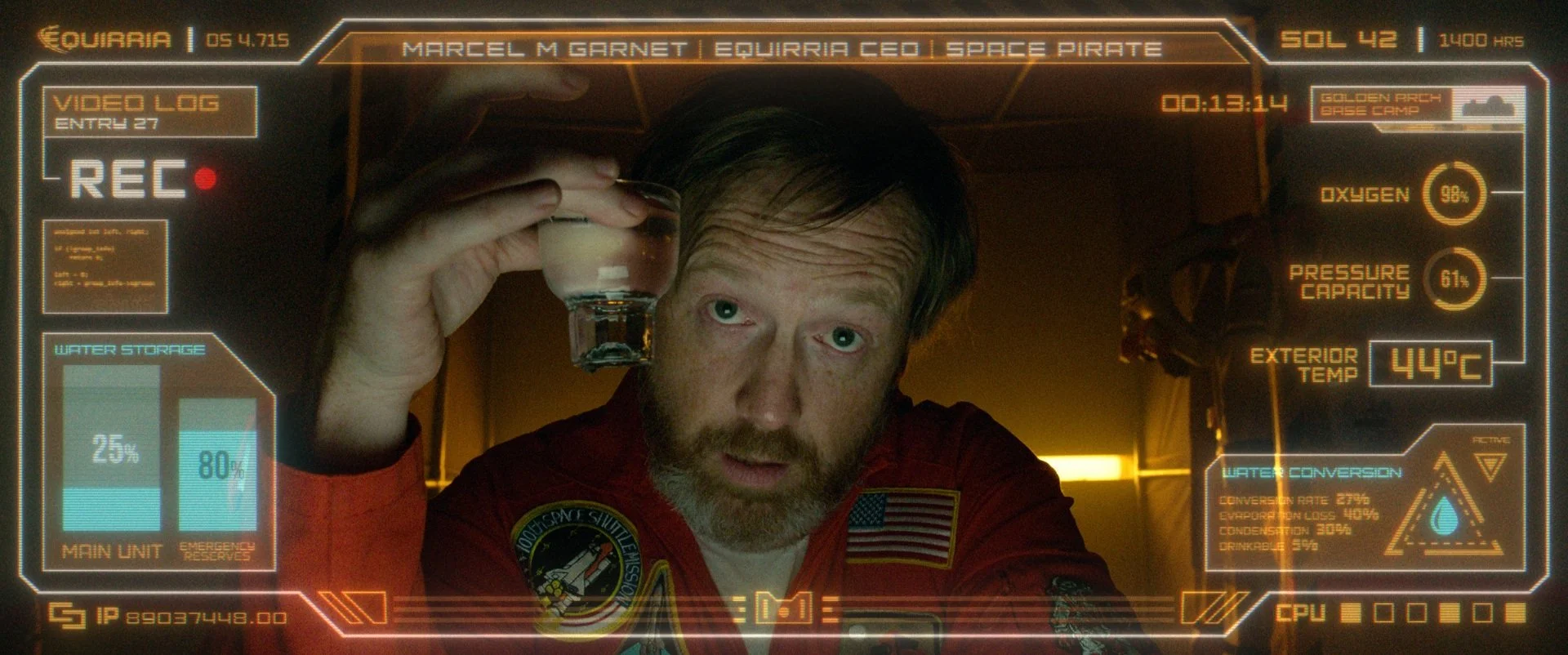An astronaut recreating Mars conditions in the US desert is saved by two passing immigrants. A negotiation ensues over the astronaut's water, vital for both his humanity-saving mission and the immigrants' hopes to survive their journey.